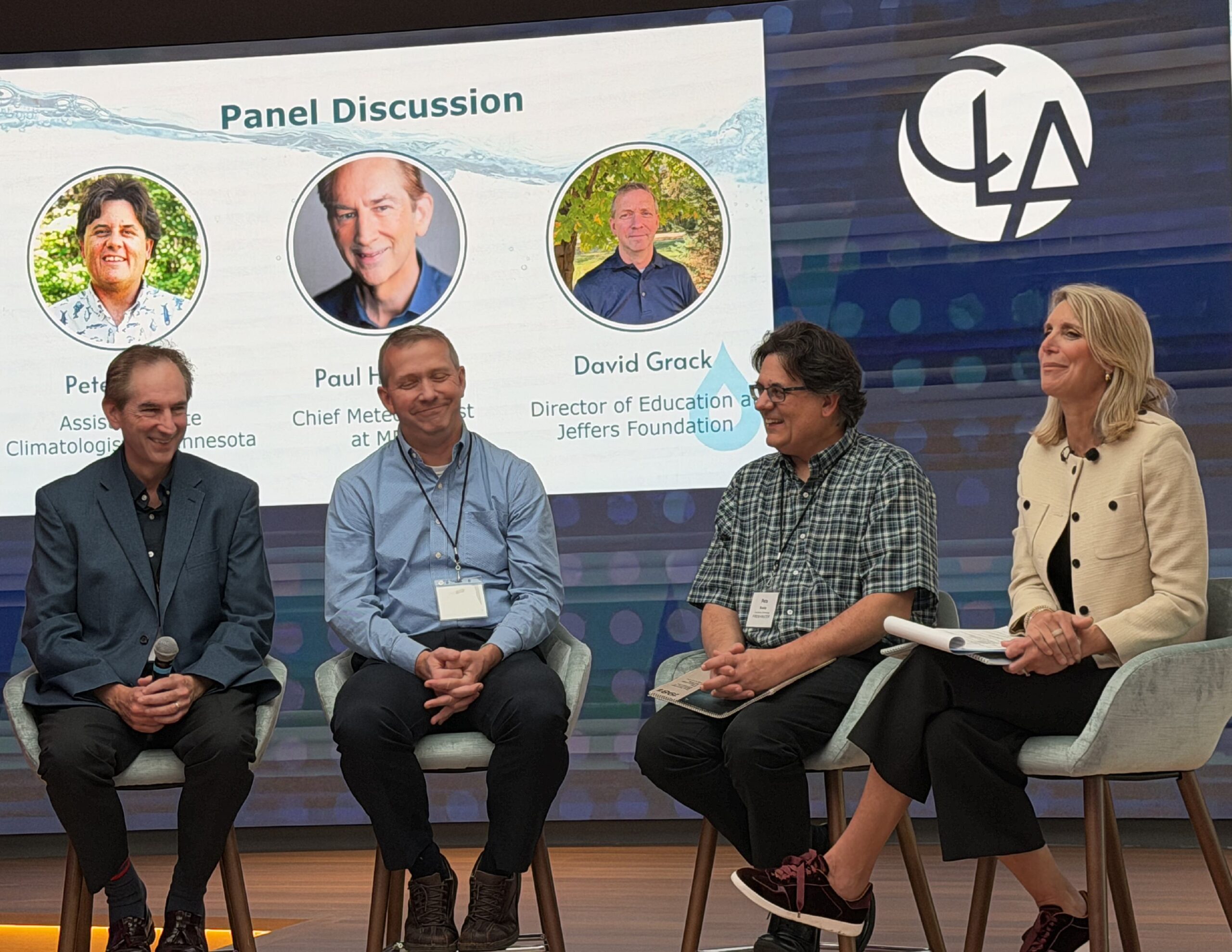 The event kicked off with opening remarks by Freshwater Executive Director Michelle Stockness and seamlessly moved to the program hosted by KARE 11 Chief Meteorologist Belinda Jensen. Belinda hosted a fun and interactive program featuring a video to pay homage to Jim Gilbert, who has been the Weatherguide's phenology consultant since the inception, and a panel discussion featuring MPR Chief Meterologist Paul Huttner, Minnesota DNR Assistant State Climatologist Pete Boulay, and Jeffers Foundation Director of Education David Grack. The event continued with lunch, providing opportunities for networking and an immersive walkthrough of the 50 Years of the Weatherguide display in a separate space at CLA Connect. Overall, it was a wonderful gathering that celebrated the people who have shaped the Weatherguide and those who keep its mission alive through education and exploration.